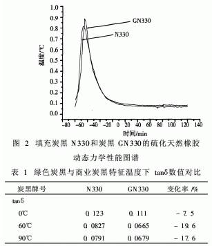 2.2綠色炭黑N330對硫化天然橡膠動態(tài)力學性能的影響