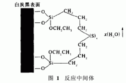 數(shù)十年來,當(dāng)配合礦物類填料時,采用烷氧基硅烷雙(三乙氧基硅丙基)四硫化物(TESPT)和雙(三乙氧基硅丙基)二硫化物(TESPD)改進(jìn)膠料性能獲得了重大的商業(yè)利益。目前這一領(lǐng)域的研究仍然十分活躍。2004年美國專利局公布了66個有關(guān)TESPT和22個有關(guān)TESPD的專利申請。Rauline成功研究出的采用溶聚聚合物的三段混煉膠現(xiàn)已成為制造高動態(tài)性能轎車輪胎胎面膠的經(jīng)典。有人開發(fā)了在白炭黑與硅烷初始反應(yīng)期內(nèi)氧化鋅之類的堿性氧化物被抑制住的混煉程序。據(jù)認(rèn)為,鋅元素與白炭黑表面反應(yīng),降低了硅烷醇的疏水作用。這些工作的重點(diǎn)是硅烷和硅烷醇的反應(yīng)途徑。顯然,許多研究工作的結(jié)論認(rèn)為,混煉過程中水的存在局限性地減緩了這些反應(yīng)。當(dāng)硅烷醇凝結(jié)到白炭黑表面后,可以想像硅烷中的硫可與硫化體系反應(yīng)使填料與橡膠結(jié)合(見圖1)。