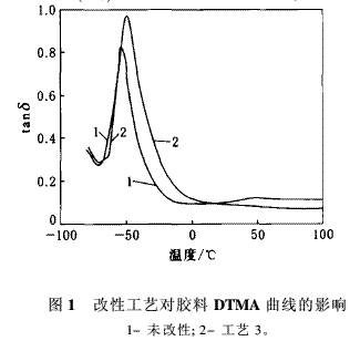 改性工藝對膠料DTMA曲線的影響如圖1所示。