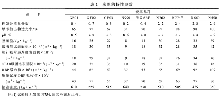 炭黑GF01,GF02,GF03和WZ SRF(N800系列),中國海洋石油南海西部公司北海炭黑廠產(chǎn)品;炭黑N990,加拿大Cancarb公司產(chǎn)品;炭黑N774,N762和N660,美國卡博特公司產(chǎn)品;炭黑N550,英國飛利浦公司產(chǎn)品。