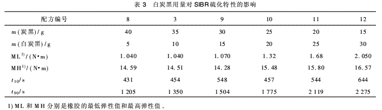 2.3 白炭黑用量對(duì)SIBR硫化特性的影響