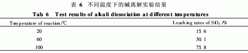 表6是NaOH濃度為3. 3 mol/L,在不同溫度下進(jìn)行了4. 0h的堿離解反應(yīng)的實(shí)驗(yàn)結(jié)果。
