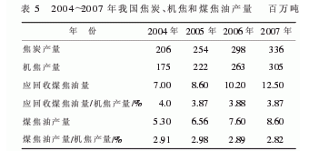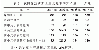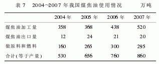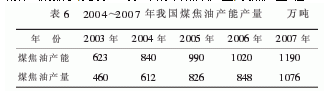 根據(jù)中國煉焦工業(yè)協(xié)會的統(tǒng)計,2004~2007年中國煤焦油產(chǎn)量從530萬噸增加到860萬噸,年平均增長19%。2004~2007年我國焦炭、機(jī)焦和煤焦油產(chǎn)量見表5。