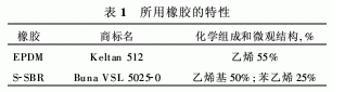 本研究使用的橡膠為市售品級。其化學特征性能示于表1,該表中還列出了聚合物中有重要熱力學意義的乙烯基鏈段和苯乙烯單元質(zhì)量分數(shù)。采用N330炭黑品種作為填料。