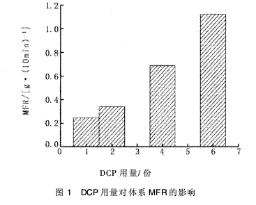 2.1 DCP用量對動態(tài)硫化POE/PP體系MFR的影響