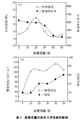 2.4.3 炭黑用量對動態(tài)硫化POE/PP體系力學性能的影響