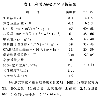 炭黑N642的理化分析結(jié)果見表1。從表1可以看出,炭黑N642的理化性能達到國家標準優(yōu)等品指標要求。