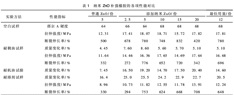 納米ZnO,ZnO晶須,炭黑并用補(bǔ)強(qiáng)NBR的實(shí)驗(yàn)研究
