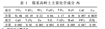 原料取自山西某一電廠的煤系高嶺土,用X熒光對其進(jìn)行分析,主要化學(xué)成分見表1。