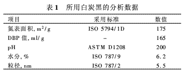 乙烯基溶聚丁苯橡膠共聚物(S-SBR 5020)與沉淀法白炭黑和硅烷偶聯(lián)劑一起使用。采用高比表面積白炭黑Vulkasil S,其分析數(shù)據(jù)列于表1。
