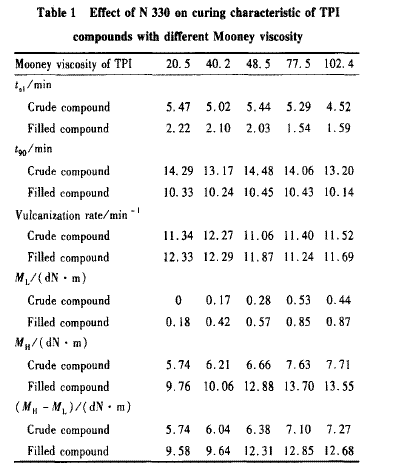 2. 2炭黑對(duì)不同門尼黏度TPI混煉膠硫化特性的影響