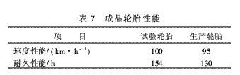 采用試驗配方試制11·00R20 YS08 18PR規(guī)格輪胎,并與同規(guī)格生產(chǎn)輪胎進行高速和耐久性試驗對比,結(jié)果見表7。從表7可以看出,試驗輪胎的速度和耐久性能均比生產(chǎn)輪胎有較大提高,高速試驗結(jié)束時試驗輪胎胎肩脫層,耐久性試驗結(jié)束時試驗輪胎胎肩無損壞,胎冠發(fā)粘,內(nèi)胎損壞,割斷面觀察胎肩墊膠沒有損壞,冠部胎面膠與帶束層之間沒有脫層。