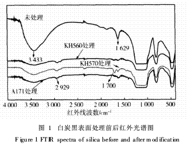 白炭黑表面處理前后的紅外分析結(jié)果見圖1。