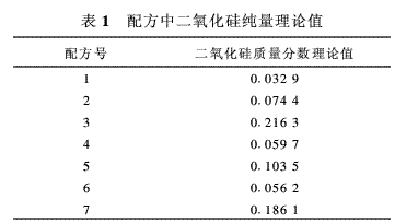 (2)原料中二氧化硅質(zhì)量分?jǐn)?shù)的測定結(jié)果由于用本方法測定出的結(jié)果為二氧化硅的純質(zhì)量,而下配方所用白炭黑和陶土等原料中二氧化硅質(zhì)量分?jǐn)?shù)各不相同,因此,首先要測定原料中的二氧化硅質(zhì)量分?jǐn)?shù)。