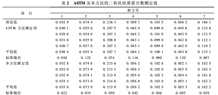 用ASTM D 297—93及本方法分別測定7個硫化膠中二氧化硅質(zhì)量分?jǐn)?shù),結(jié)果見表2。