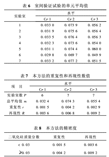 將配方組成、二氧化硅加入形式與所得R和r綜合考慮,最后確定本方法的精密度見表8。