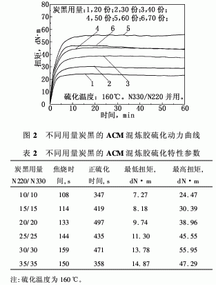 在以下的研究中,采用N220/N330并用對(duì)ACM/炭黑混煉膠進(jìn)行補(bǔ)強(qiáng)。