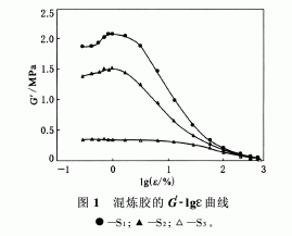 S1,S2和S3混煉膠的應(yīng)變(ε)掃描結(jié)果見圖1。