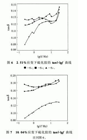 圖6和7示出了S1,S2和S3硫化膠在不同應(yīng)變下的頻率(f)掃描結(jié)果。