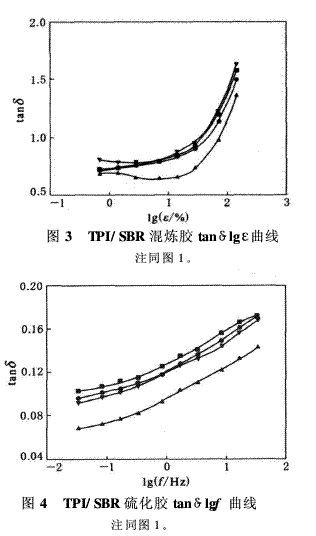 (2)采用先制備TPI炭黑母煉膠再與SBR及其它配合劑混煉的工藝,硫化膠的動(dòng)態(tài)疲勞性能較好,滾動(dòng)阻力較低。