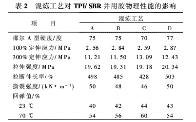 混煉工藝對(duì)炭黑補(bǔ)強(qiáng)TPI/SBR并用膠性能的影響