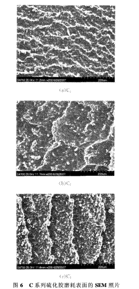 C系列硫化膠磨耗表面的SEM照片如圖6所示。