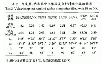 1)納米高嶺土與白炭黑相比,前者有效改善了橡膠前期硫化的操作安全性,加快了硫化速度,提高了生產(chǎn)效率.