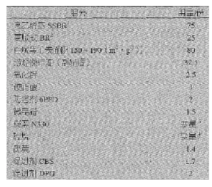 表1典刑低滾動阻力胎而膠配方
