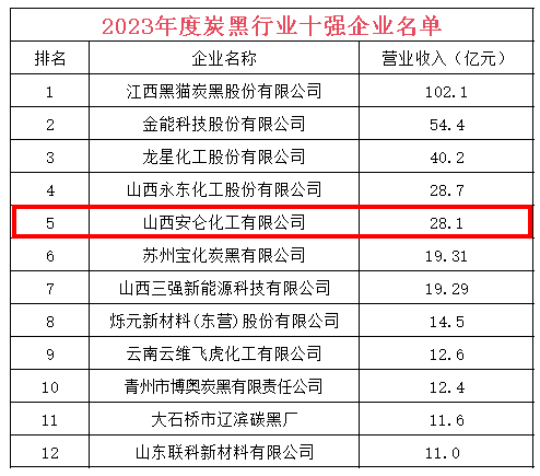 安侖化工榮登中國(guó)炭黑行業(yè)十強(qiáng)企業(yè)榜單第五位