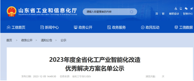 【炭黑產(chǎn)業(yè)網(wǎng)】12月7日消息,山東省工業(yè)和信息化廳日前公示了2023年度全省化工產(chǎn)業(yè)智能化改造優(yōu)秀解決方案名單。