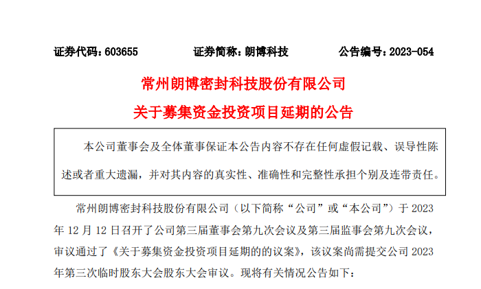 【炭黑產(chǎn)業(yè)網(wǎng)】12月13日消息,常州朗博密封科技股份有限公司宣布,將延長三個重要投資項目的建設(shè)期限,這一決策是在深入分析了行業(yè)當(dāng)前的挑戰(zhàn)和未來發(fā)展的不確定性后作出的。公司指出,由于現(xiàn)有產(chǎn)能接近飽和,且為了避免產(chǎn)能過剩,此舉旨在提高募集資金的使用效率,并最大限度地保護(hù)公司及投資者的利益。