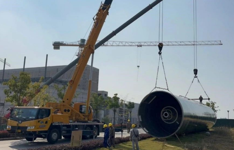 華北公司成功完成合肥馬牌料倉項目炭黑儲罐吊裝