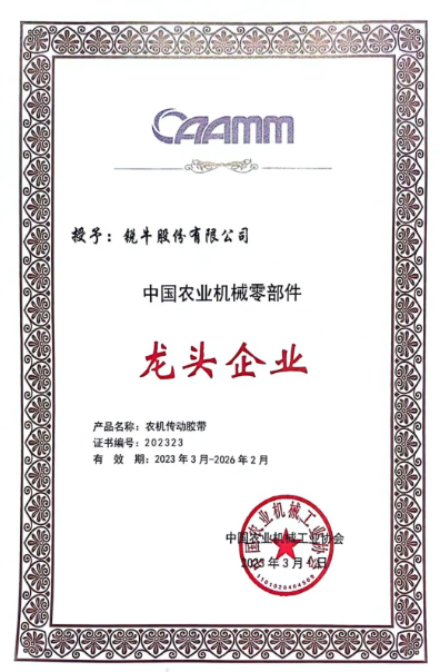 農(nóng)機傳動膠帶領(lǐng)頭羊:銳牛股份獲殊榮