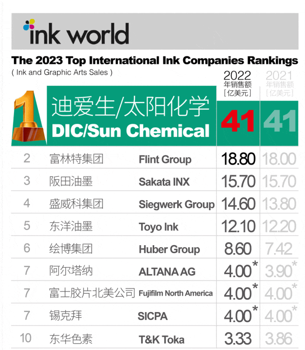 DIC憑借41億美元年銷(xiāo)售額蟬聯(lián)油墨產(chǎn)商N(yùn)o.1