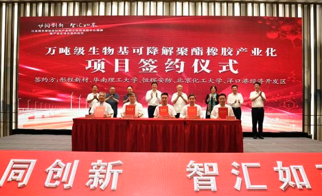2023年7月20日,江蘇綠色彈性體材料產(chǎn)業(yè)院士協(xié)同創(chuàng)新中心的成立和產(chǎn)業(yè)化項目簽約儀式在江蘇省南通市如東縣隆重舉行。該中心由江蘇省化學(xué)化工學(xué)會牽頭設(shè)立,以張立群院士為領(lǐng)頭的團(tuán)隊負(fù)責(zé)實施,主要聚焦生物基可降解聚酯橡膠技術(shù)的創(chuàng)新與應(yīng)用。這一技術(shù)在輪胎、鞋材、安防等領(lǐng)域的全球產(chǎn)業(yè)化發(fā)展中起到了領(lǐng)導(dǎo)作用,同時也推動了長三角區(qū)域綠色彈性體材料的科技進(jìn)步和成果轉(zhuǎn)化。同時,項目在儀式上同步簽約成功。