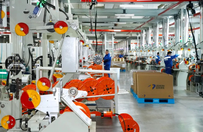 在中天淮安公司的鋼簾線生產(chǎn)車間,機器轟鳴,生產(chǎn)繁忙。數(shù)萬臺機器滿負(fù)荷運轉(zhuǎn),工人們在各自崗位上忙碌工作,呈現(xiàn)出一派熱火朝天的生產(chǎn)景象。據(jù)一廠簾線車間經(jīng)理于新明介紹,車間已實施智能化生產(chǎn),從原材料到成品的全過程都實現(xiàn)了自動化物流。目前,車間的規(guī)劃產(chǎn)能為24萬噸,實際產(chǎn)能已達到15萬噸,預(yù)計今年6月份將實現(xiàn)全面達產(chǎn)。