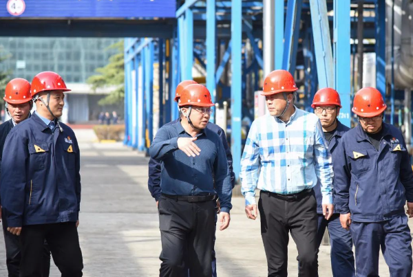 調(diào)研團(tuán)隊(duì)首先實(shí)地走訪了韓城黑貓公司的炭黑車間與儲運(yùn)中心,對現(xiàn)場的生產(chǎn)環(huán)境、設(shè)備運(yùn)行狀況以及管理流程進(jìn)行了細(xì)致的觀察與詢問。汪羽董事長特別關(guān)注了企業(yè)在生產(chǎn)運(yùn)行、現(xiàn)場管理以及安全環(huán)保等方面的實(shí)際情況,并聽取了相關(guān)負(fù)責(zé)人對公司整體運(yùn)營狀況、一季度工作重點(diǎn)及未來發(fā)展規(guī)劃的詳細(xì)匯報(bào)。