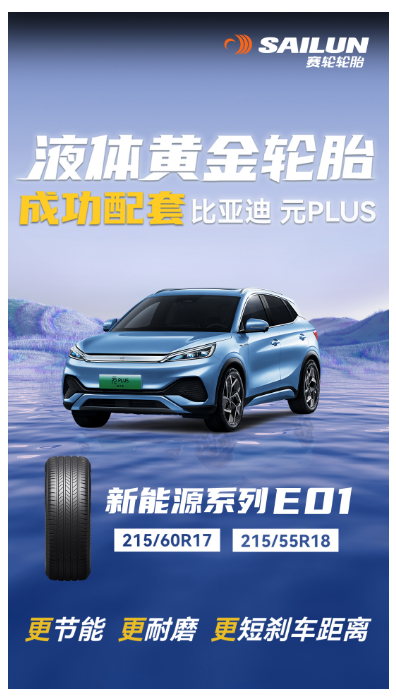 【炭黑產(chǎn)業(yè)網(wǎng)】4月14日消息,近日,國內(nèi)知名的輪胎制造商賽輪憑借其領(lǐng)先的技術(shù)實(shí)力和卓越的服務(wù)質(zhì)量,成功贏得了為比亞迪元PLUS車型提供配套輪胎的機(jī)會。此次所提供的輪胎型號為液體黃金新能源EV系列的215/60R17與215/55R18,這兩款輪胎是賽輪針對全球中高端主流新能源車特別研發(fā)和推出的產(chǎn)品。