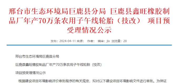 鑫旺橡膠廠農(nóng)用子午線輪胎技改項目獲受理