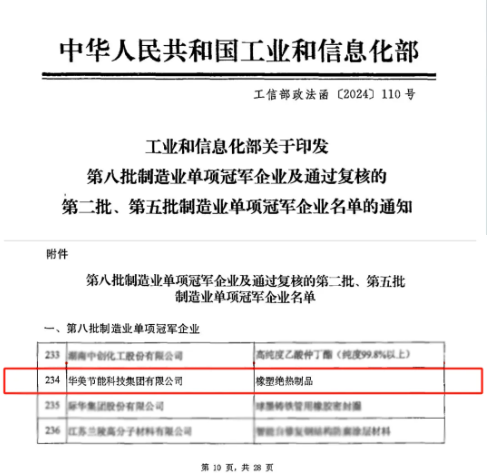 【炭黑產(chǎn)業(yè)網(wǎng)】4月29日消息,近日,華美集團因其在橡塑絕熱制品領(lǐng)域的卓越表現(xiàn),被國家工業(yè)和信息化部評為2023年國家制造業(yè)單項冠軍企業(yè)。