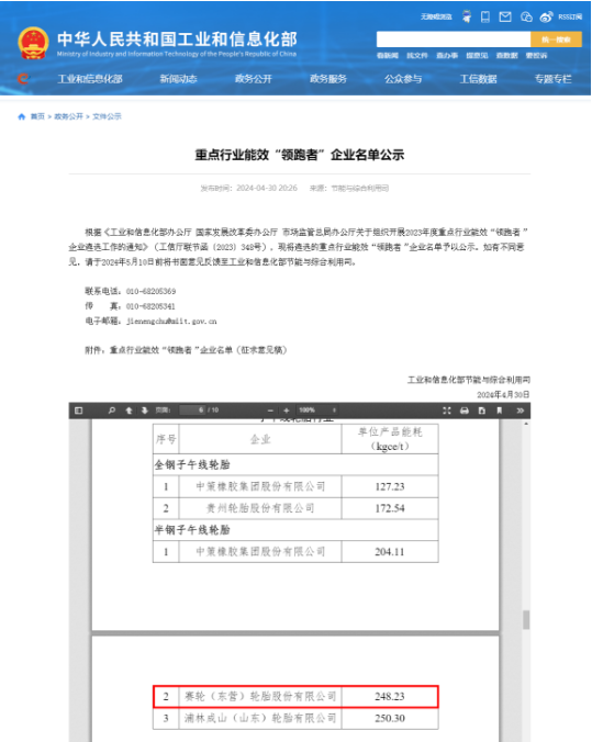 賽輪輪胎成為東營(yíng)唯一,入選工信部能效“領(lǐng)跑者”名單