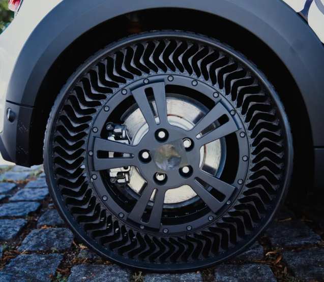 據(jù)炭黑產(chǎn)業(yè)網(wǎng)了解,米其林早在2019年便與通用汽車聯(lián)手,首次展示了Uptis無氣輪胎的原型,并在通用雪佛蘭Bolt上進(jìn)行了實地測試。經(jīng)過持續(xù)的研發(fā)和優(yōu)化,目前這款輪胎雖然還處于原型階段,但已經(jīng)贏得了業(yè)界的廣泛關(guān)注。其多層橡膠和玻璃纖維的構(gòu)造,徹底摒棄了傳統(tǒng)的充氣內(nèi)胎設(shè)計,從而大幅提升了行駛的安全性,即使輪胎被釘子等尖銳物刺穿,也不會出現(xiàn)漏氣情況。
