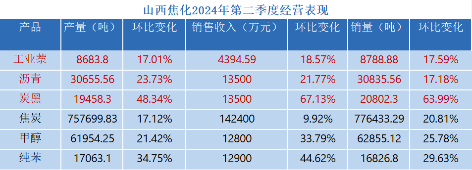 7月10日消息,山西焦化(600740)股份有限公司今日發(fā)布了其2024年二季度的經(jīng)營(yíng)數(shù)據(jù)公告,顯示公司在多個(gè)產(chǎn)品線的生產(chǎn)與銷售收入上均實(shí)現(xiàn)了顯著增長(zhǎng)。