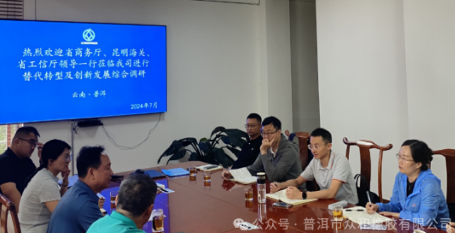 【炭黑產(chǎn)業(yè)網(wǎng)】7月26日消息,為深入了解替代企業(yè)發(fā)展?fàn)顩r,進(jìn)一步推動產(chǎn)業(yè)替代轉(zhuǎn)型和創(chuàng)新高質(zhì)量發(fā)展,2024年7月18日,由云南省商務(wù)廳、昆明海關(guān)、省工信廳和省相關(guān)協(xié)會共同組成的聯(lián)合調(diào)研組,在省替代辦副主任黃俊波的率領(lǐng)下,蒞臨普洱市眾和橡膠有限公司進(jìn)行深入調(diào)研。此次調(diào)研活動還得到了普洱市商務(wù)局、思茅區(qū)商務(wù)局以及思茅海關(guān)等相關(guān)單位的大力支持。