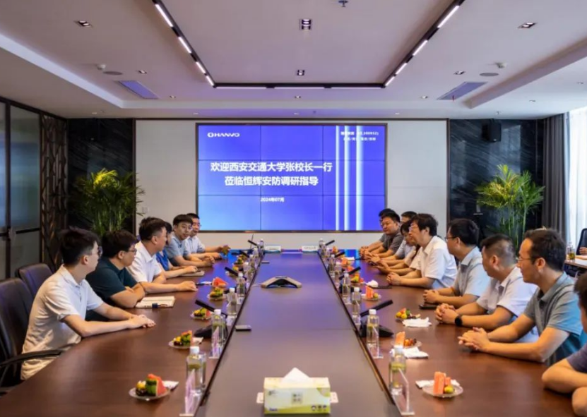 在隨后的座談中,董事長(zhǎng)王咸華詳細(xì)介紹了恒輝安防的企業(yè)發(fā)展歷程、主營(yíng)產(chǎn)品的獨(dú)特性質(zhì)、廣泛的應(yīng)用領(lǐng)域以及公司未來(lái)的戰(zhàn)略規(guī)劃。他強(qiáng)調(diào),恒輝安防始終認(rèn)識(shí)到產(chǎn)學(xué)研結(jié)合的重要性,并一直致力于與各大高校及研究機(jī)構(gòu)進(jìn)行深度合作。王咸華表示,期待能夠與西安交大攜手,共同推動(dòng)科技創(chuàng)新達(dá)到新的高度。
