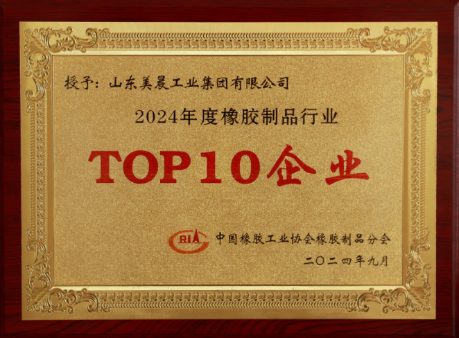 美晨工業(yè)集團榮獲2024橡膠制品行業(yè)TOP10企業(yè)稱號
