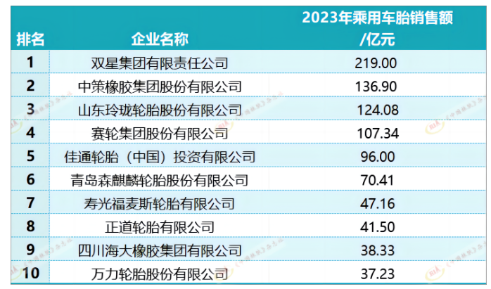 2024年度中國乘用車輪胎企業(yè)10強(qiáng)