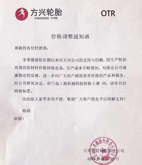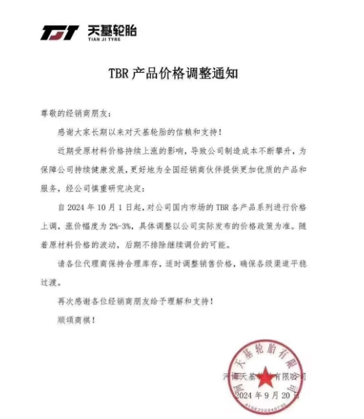 此番橡膠期貨價(jià)格的飆升,迅速在下游產(chǎn)業(yè)鏈中引發(fā)了連鎖反應(yīng)。次日,即9月20日,三家輪胎企業(yè)幾乎同時(shí)發(fā)布了漲價(jià)通知。