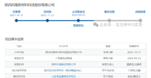 北交所暫緩科隆新材IPO審議