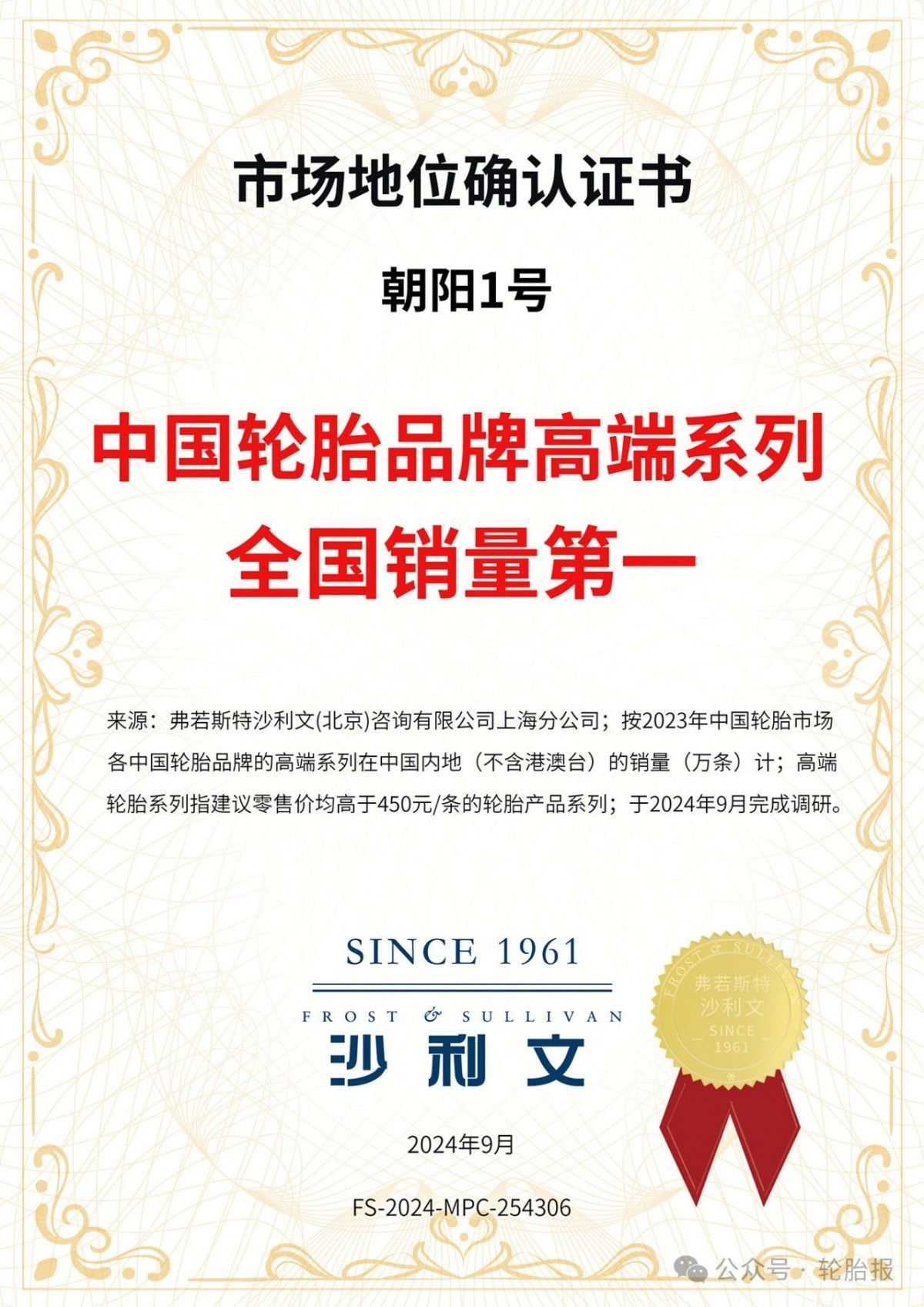 朝陽(yáng)1號(hào)輪胎榮獲2023中國(guó)高端輪胎銷量冠軍